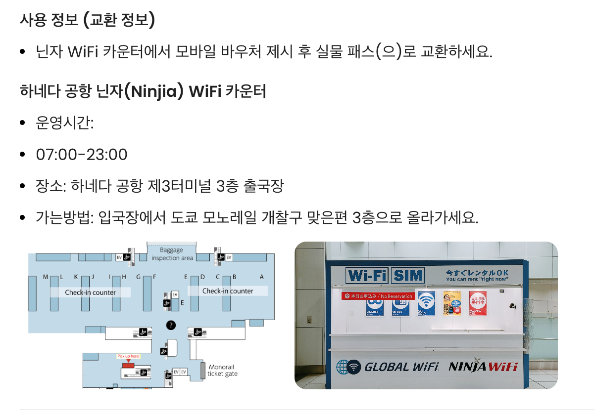 수령처는 하네다 3터미널 3층 출국장에 위치한 닌자 와이파이 카운터입니다.
