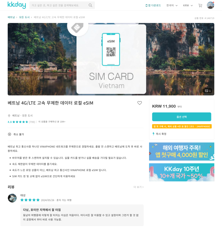 베트남 데이터 무제한 eSIM