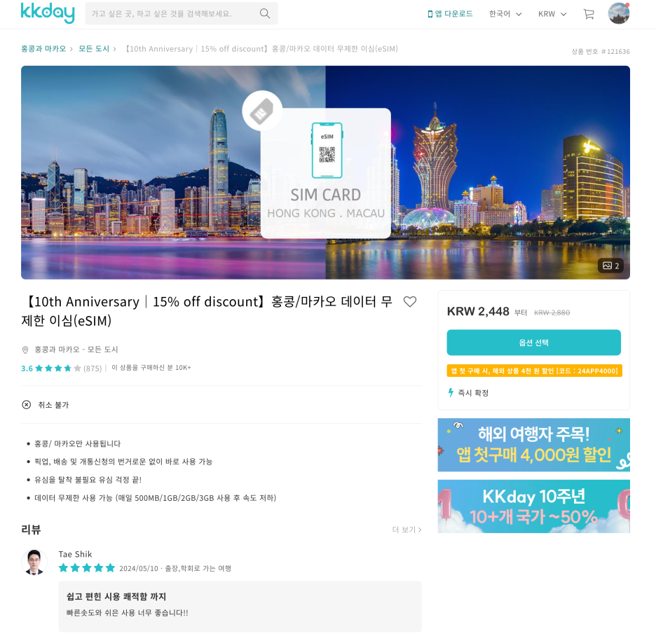 홍콩 eSIM 은 가격이 좀 쎄군요?