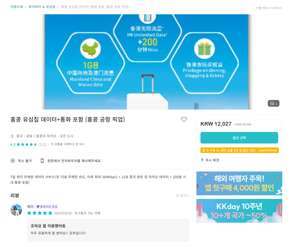 홍콩 eSIM 은 가격이 좀 쎄군요?